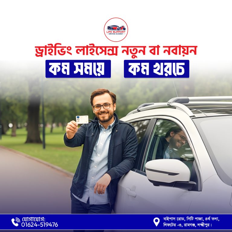 - লাইসেন্স সহায়তা ড্রাইভিং লাইসেন্স করার পুরো প্রক্রিয়ায় আমরা আপনাকে ধাপে ধাপে সহযোগিতা করি, যেন ঝামেলা ছাড়াই লাইসেন্স পান।